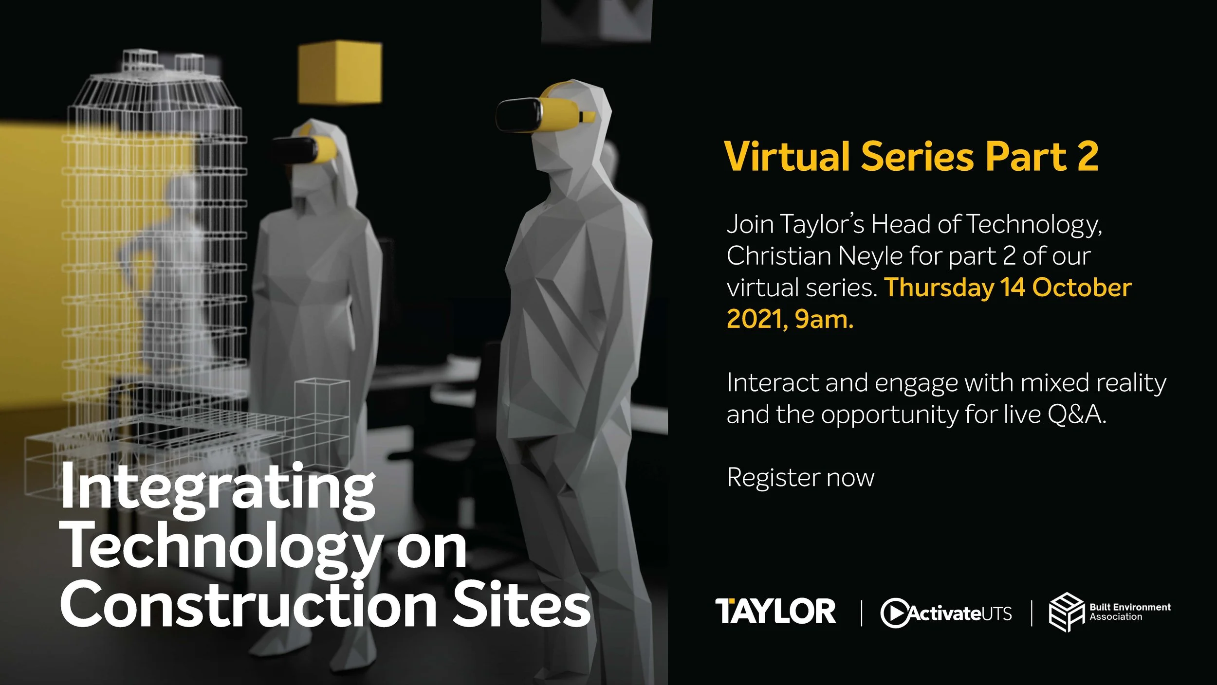 On Thursday, the 14th of October, BEA was back with part 2 of 3 in the Taylor Virtual Series - Integrating Technology on Construction sites. The seminar was hosted by Taylor's Head of Technology, Christian Neyle, together with BEA.
